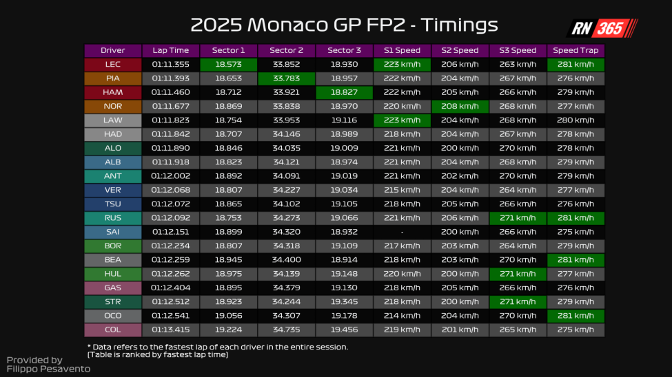 But through the flick of Tabac and dance of Anthony Noghes, that Ferrari was on top. It was enough to pip Piastri by 0.038s to top the session.